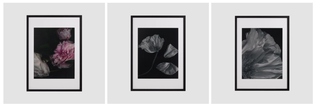 Każda z fotografii cyklu „Flora” to owoc intymnej pracy Heleny Christensen, globalnej dyrektor artystycznej BoConcept. W „Flora 1” uchwycono delikatne piękno kwiatu w urzekającym zbliżeniu, z kroplami deszczu spoczywającymi niczym perły na jego aksamitnych płatkach. Dzieła „Flora 2” i „Flora 3” to wariacje na temat pojedynczego kwiatu z opadającymi płatkami, zaprezentowane w szlachetnej palecie czerni, bieli i subtelnych odcieniach szarości, podkreślającej ich dramatyzm i efemeryczność.