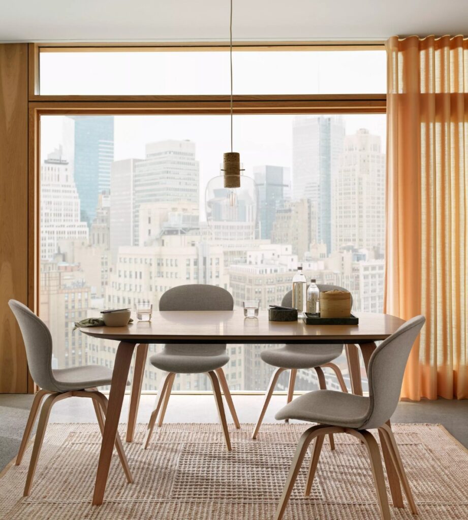 - Naturalne drewno ogrzewa przestrzeń, metalowe akcenty dodają miejskiej elegancji, a łagodne, organiczne linie nadają krzesłom ponadczasowy wdzięk.